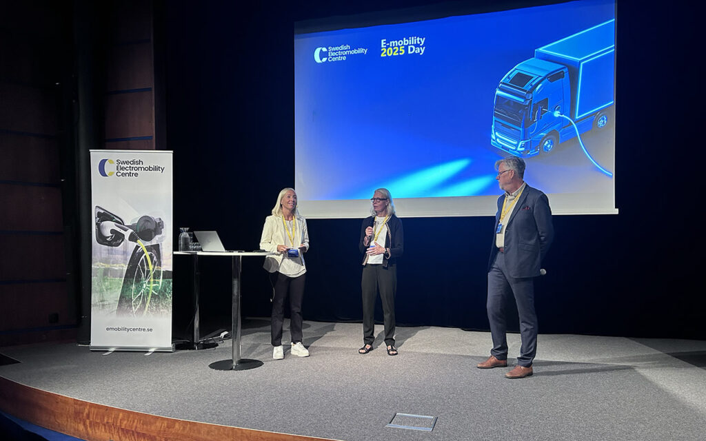 Linda Olofsson kicked off E-mobility Day by interviewing Elna Holmberg, Vice president of Volvo Group Electromobility, and Nils-Gunnar Holmberg Director of technical affairs at Traton Group R&D, and chair of Swedish Electromobility Centre. The conversation addressed challenges in e-mobility and the increasing interest in resilience. Both agreed that e-mobility is an inherently good idea that can be competitive, resilient, and sustainable.