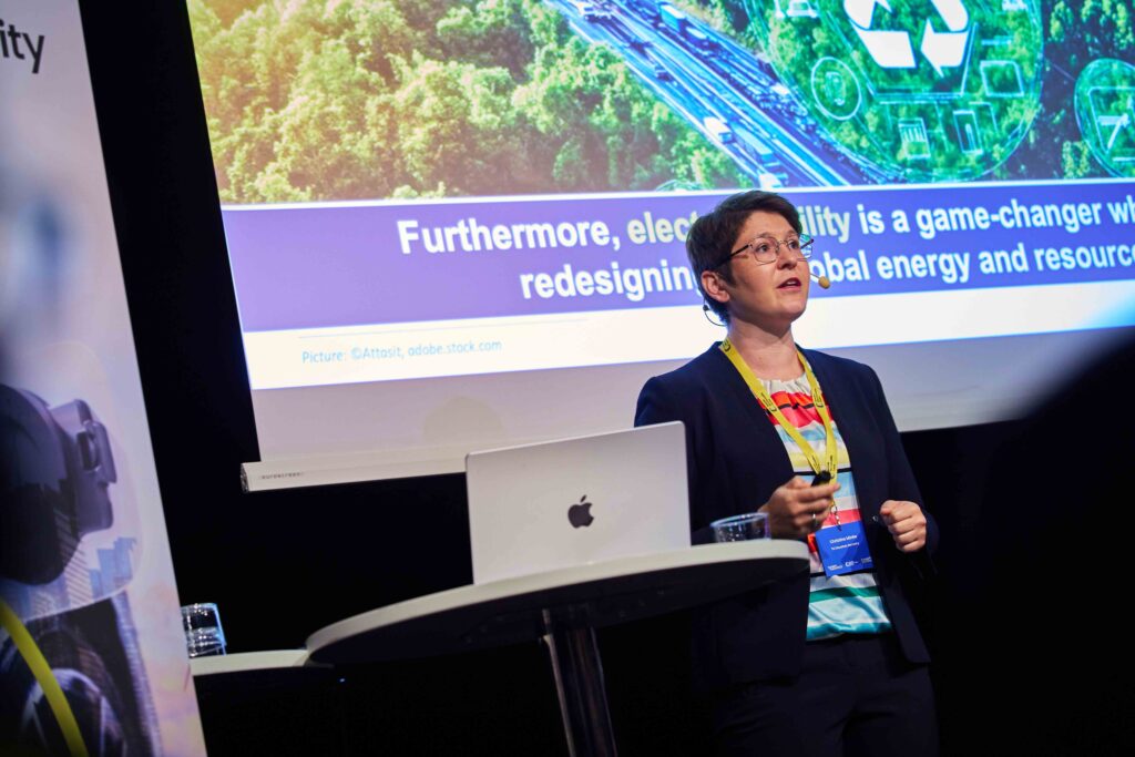 Dr. Guinievere Giffin, Scientific Head of Fraunhofer R&D Center Electromobility, gave an insightful speech on how to to empower a sustainable battery value chain, with focus on direct and hydrometallurgical recycling from production scrap. Guinevere stressed that the greatest impact for circularity of batteries is in the early design phase, since it’s very problematic to repair, reuse or remanufacture batteries without an initial idea of how this can be done in a later stage. The presentation contained many specific examples and mentioned ongoing research at Fraunhofer on marker particles and aqueous binders.